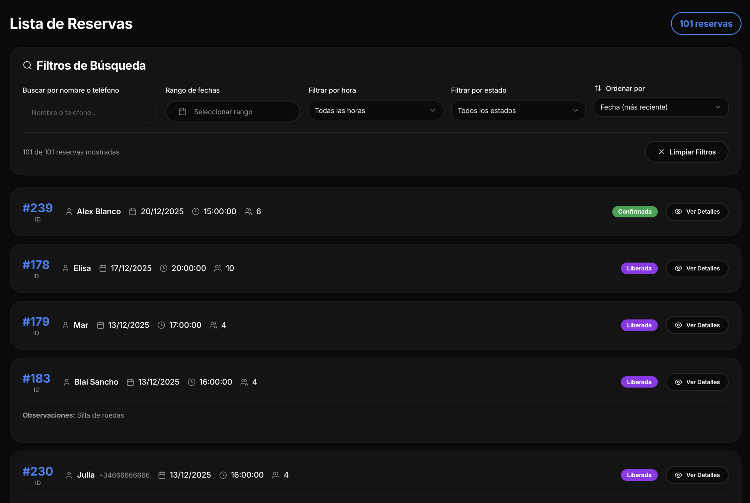 Controla reservas, mesas y atención al cliente desde un solo lugar, sin depender del teléfono ni de plataformas externas