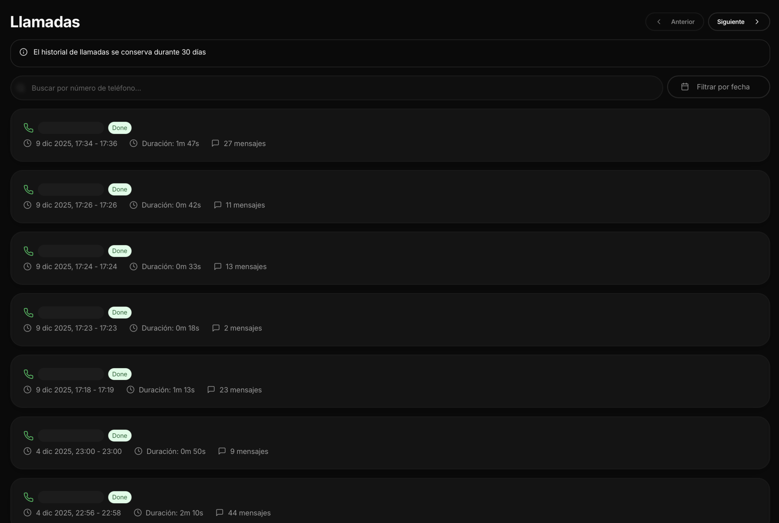 Llamadas automatizadas por semana